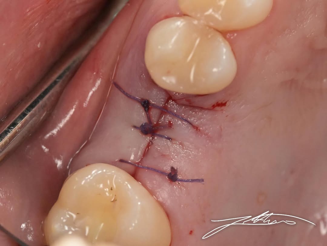 Pas arritjes së lartësisë së planifikuar, u vendos një implant dentar me dimensione 3.5 × 8 mm, duke përfituar nga stabiliteti i krijuar përmes ngritjes krestale të sinusit. Zona kirurgjikale u mbyll më pas me suturë, duke përfunduar procedurën kirurgjikale në mënyrë të kontrolluar dhe të sigurt.